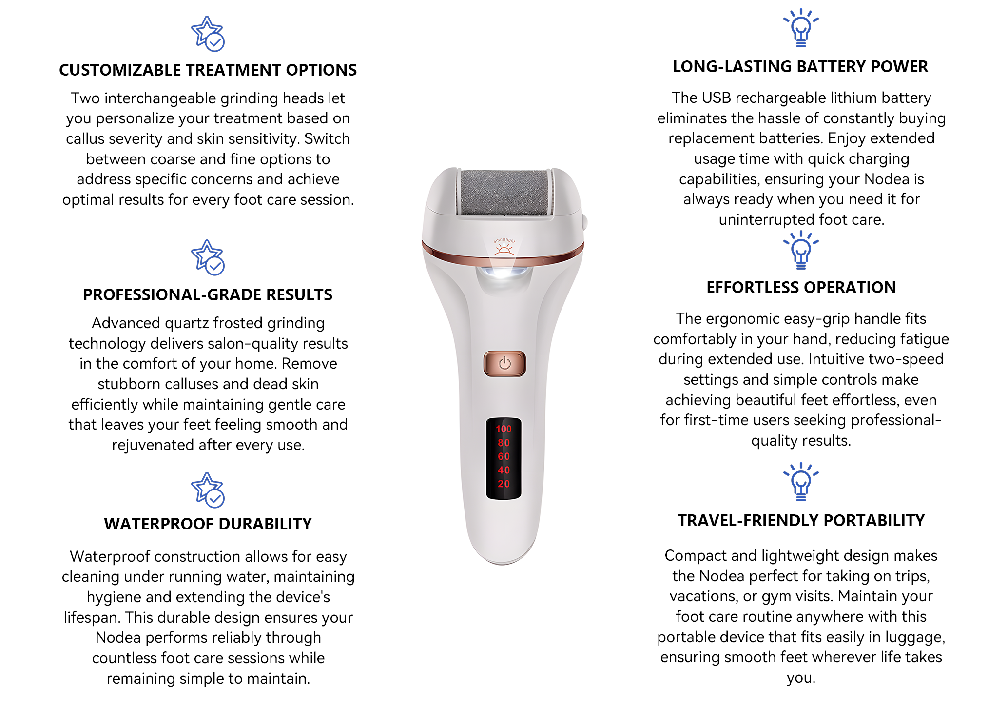 For optimal results, use the Nodea 2-3 times weekly, spending about 2-3 minutes per foot. Regular maintenance sessions help prevent callus buildup and keep your feet consistently smooth and healthy-looking throughout the year.