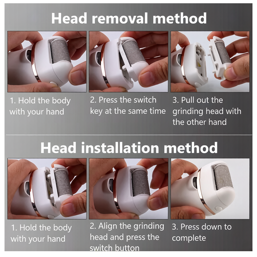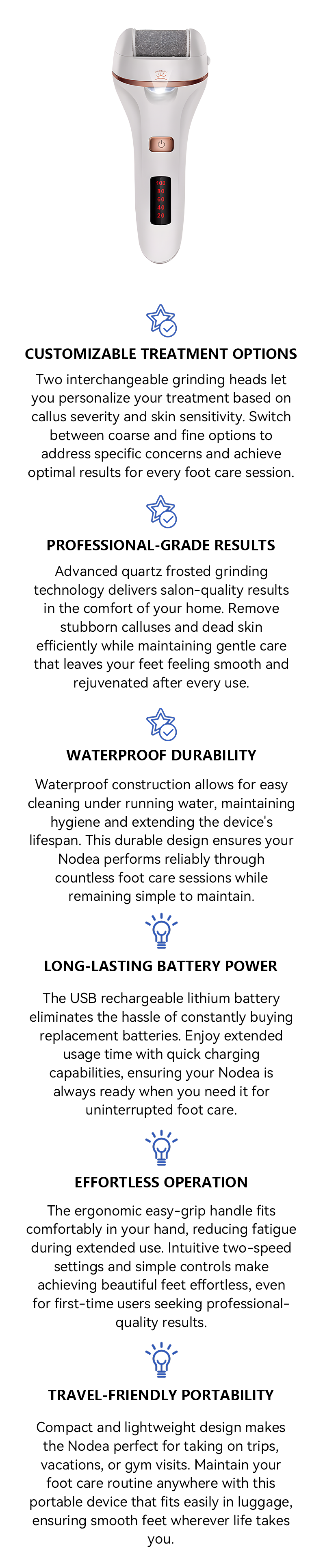 The coarse grinding head effectively tackles tough, stubborn calluses, while the fine head provides gentler treatment for sensitive areas and regular maintenance. This versatility allows you to customize your foot care based on specific needs and skin conditions.