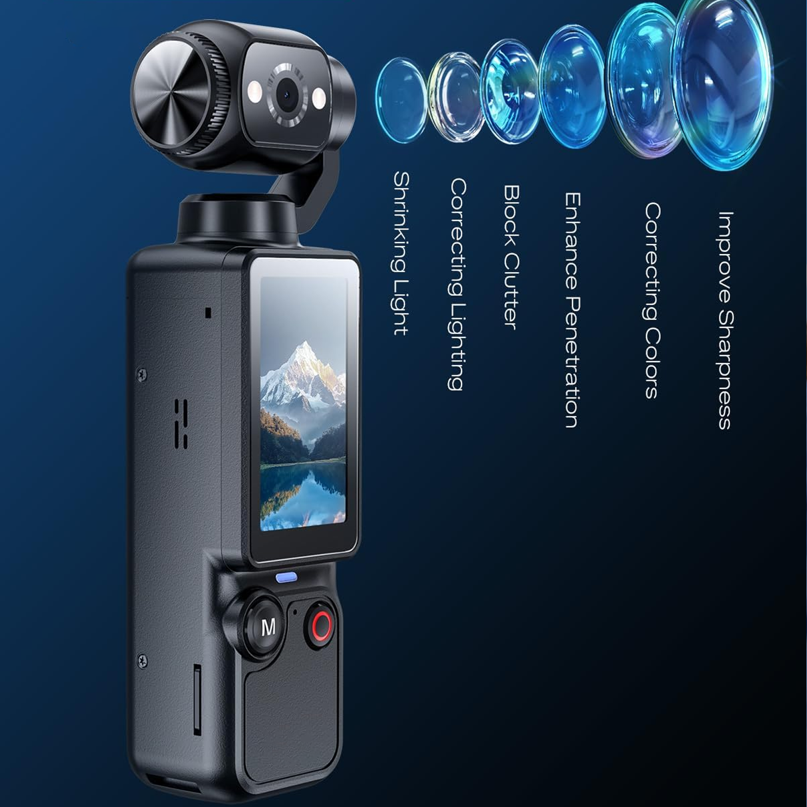 Featuring a high-performance lens that enhances sharpness, corrects color and lighting, improves clarity, minimizes background clutter, and reduces glare. Every frame is clear, natural, and detailed—perfect for landscapes, people, or dynamic scenes, delivering stable and impressive visuals.
